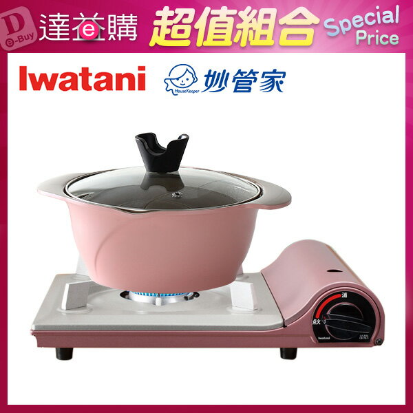 卡式爐/岩谷/瓦斯爐/TS-1[超值組合]日本IWATANI岩谷超薄高效能卡式爐 櫻花粉TS-1+妙管家 雙耳玫瑰鍋20cm 另有卡式爐硬盒超值組