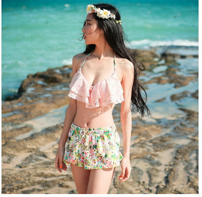 【資料來源 / 版權 與 商品購買網址】韓國夏新款 泳衣分體裙式比基尼小胸聚攏鋼托三件套