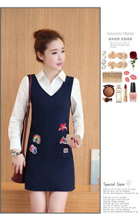 出自:線上購物分享 - (春暖花開)白襯衫+V領可愛圖騰背心裙套裝預購七天