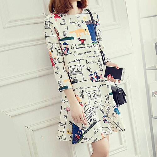 出自:線上購物分享 - 韓版魚尾裙擺七分袖卡通圖案荷葉連身裙 (花色,SXL) - ORead 自由風格