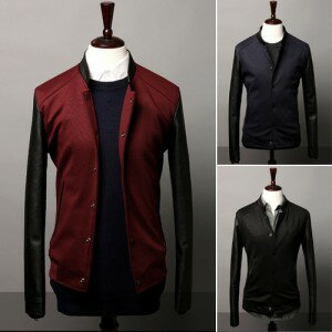 出自:線上購物分享 - 2014男式最新時尚韓味個性袖子拼皮撞色羅紋下擺休閒夾克 外套